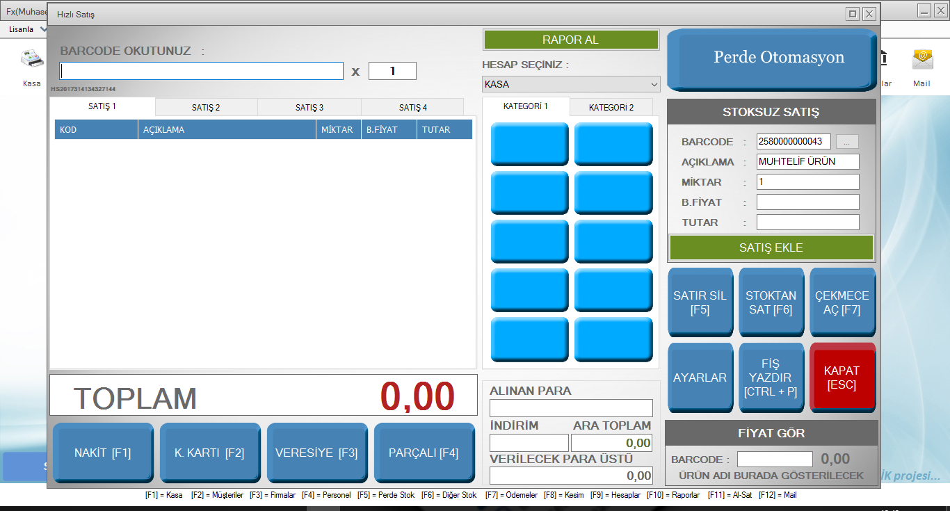 -Hızlı Satış Modülü sayesinde Barkod okutarak satış yapabilirsiniz.