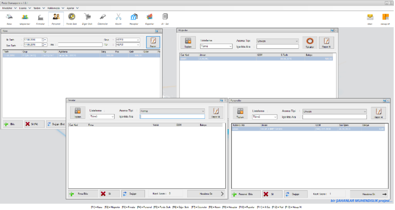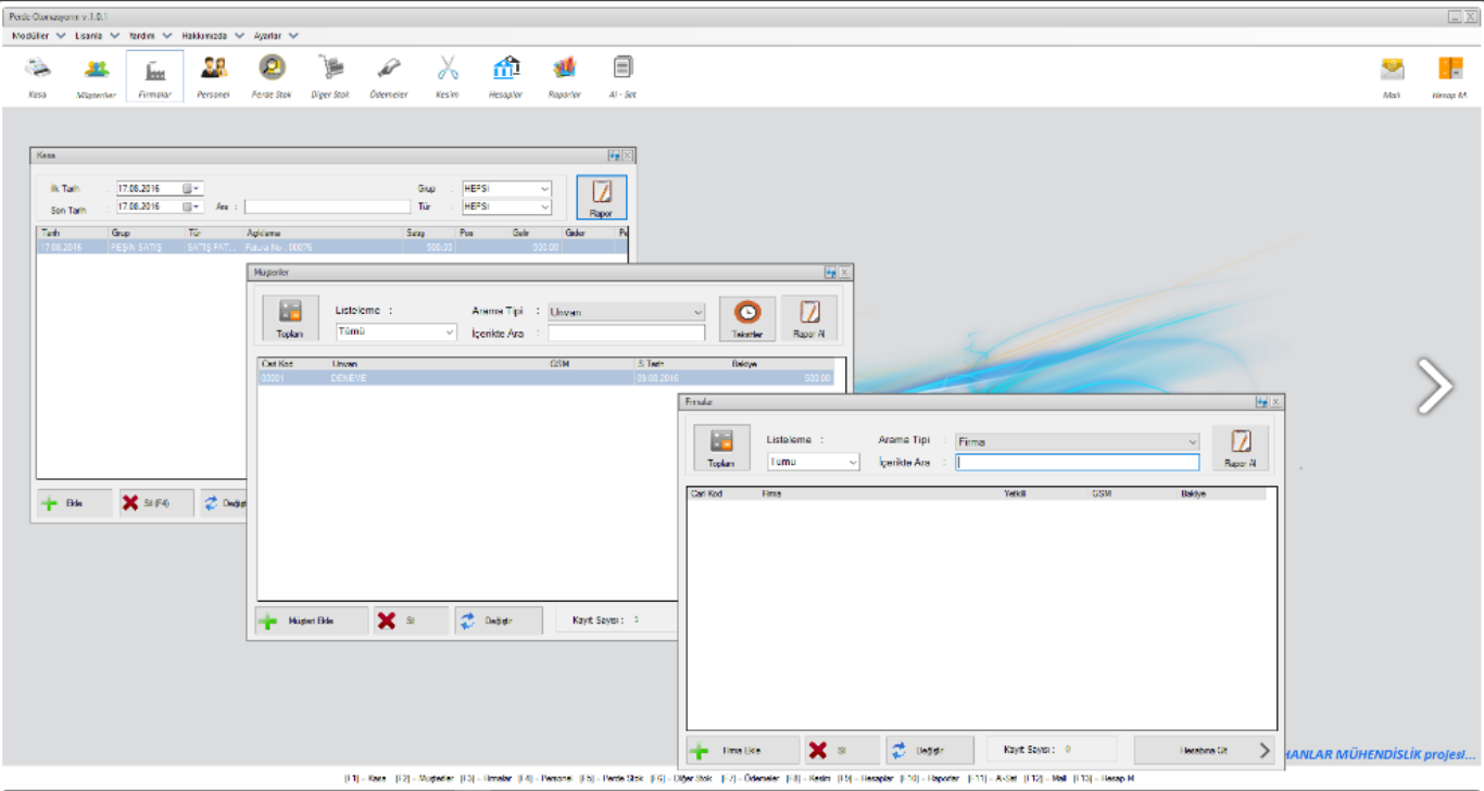 - Raporlar Modülü Kasa,Müşteriler modülü iler ortak çalışmaktadır.