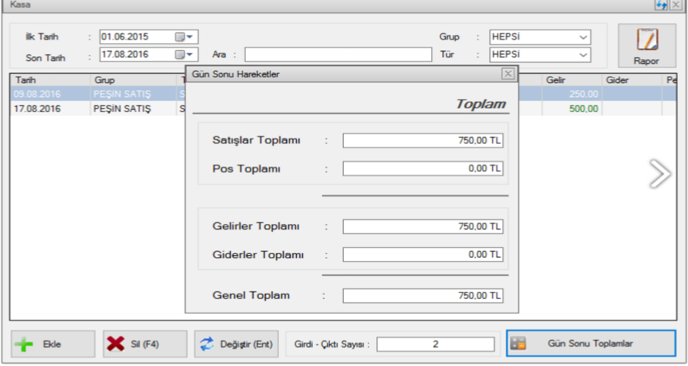 - Gün sonu işlemlerinizi bu ekrandan takip edebilirsiniz.