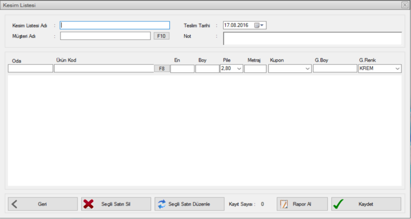 - Kesim Listesi ile oluştutulan listeler Perde Stok tan otomatik düşüm yapılmaktadır