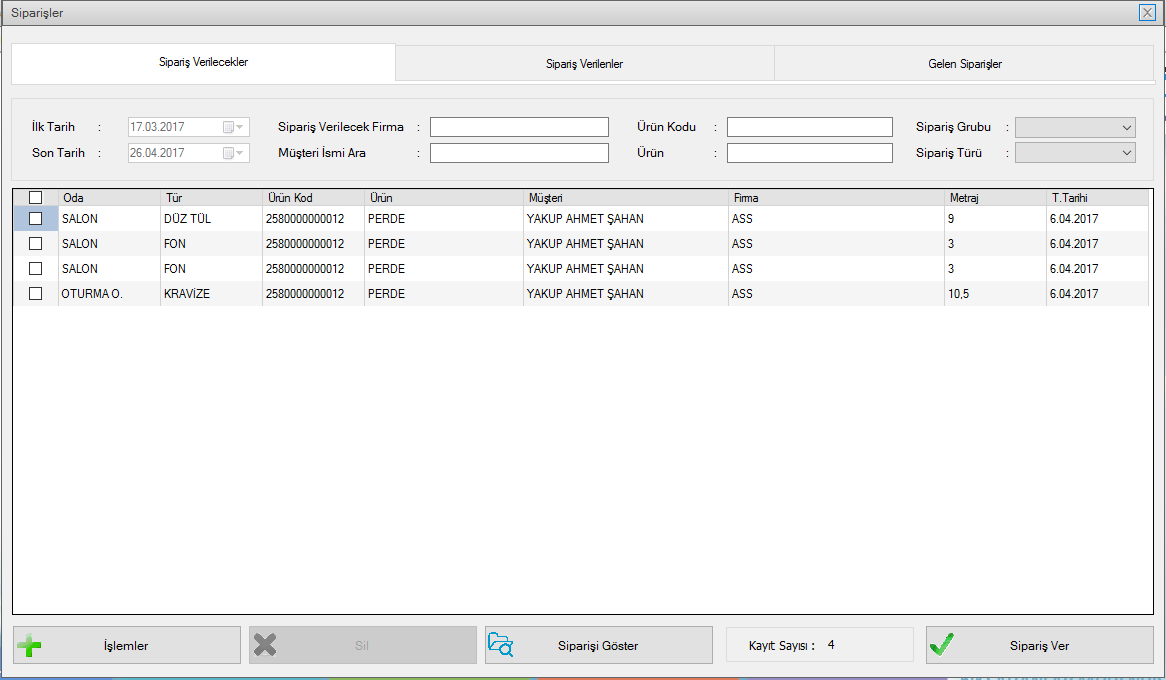 -Siparişler Modülü Ölçü-2 Modülü ile ortak çalışmaktadır.