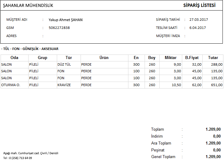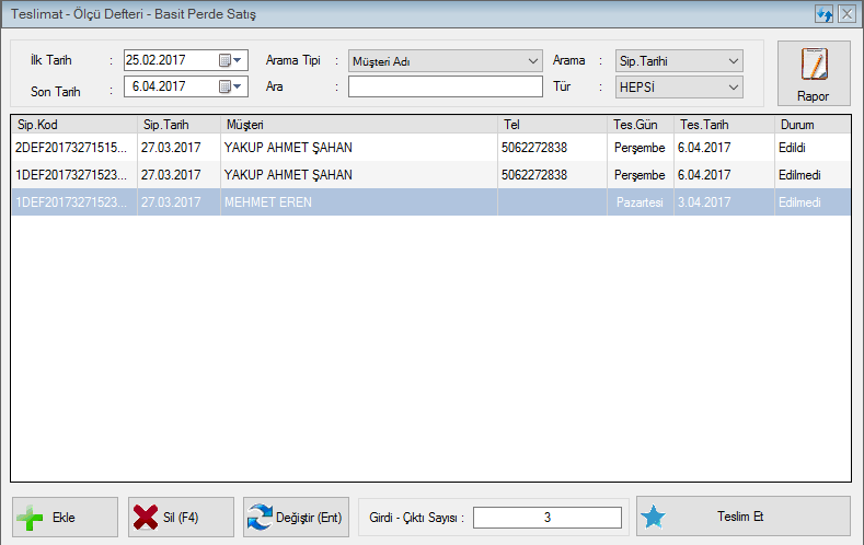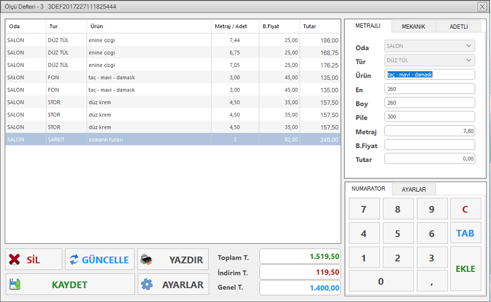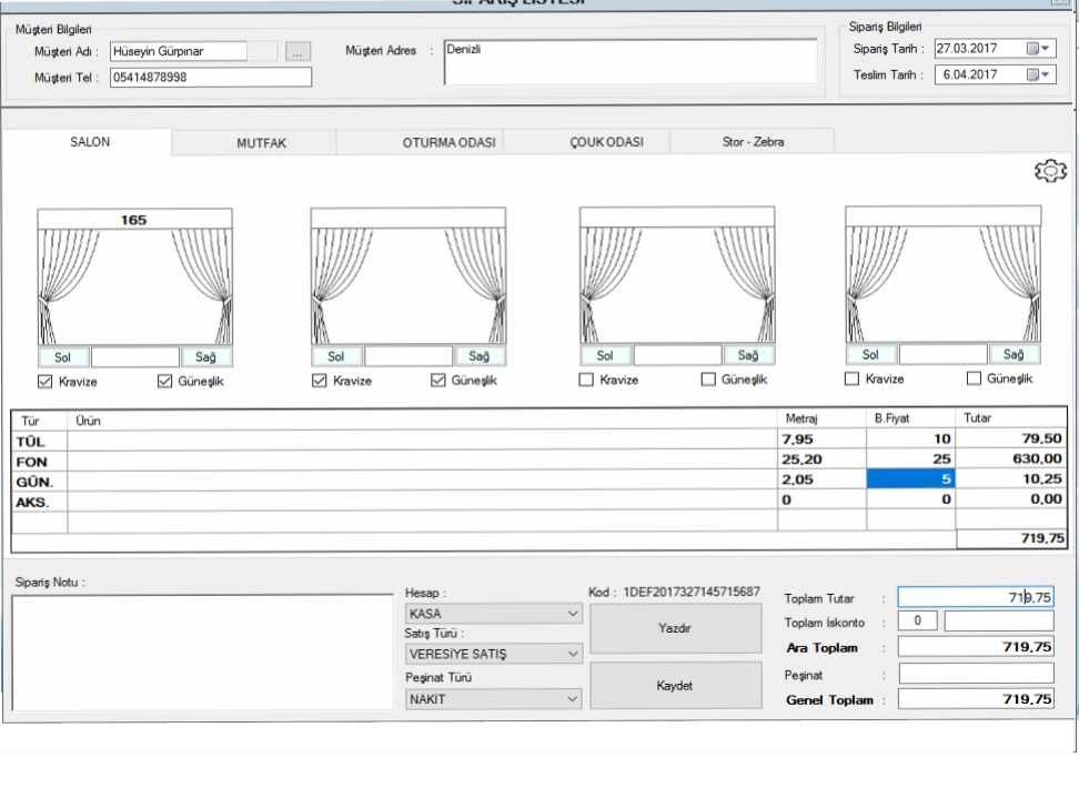 - Sınırsız Sayıda Perde Stok kaydı yapabilirsiniz.